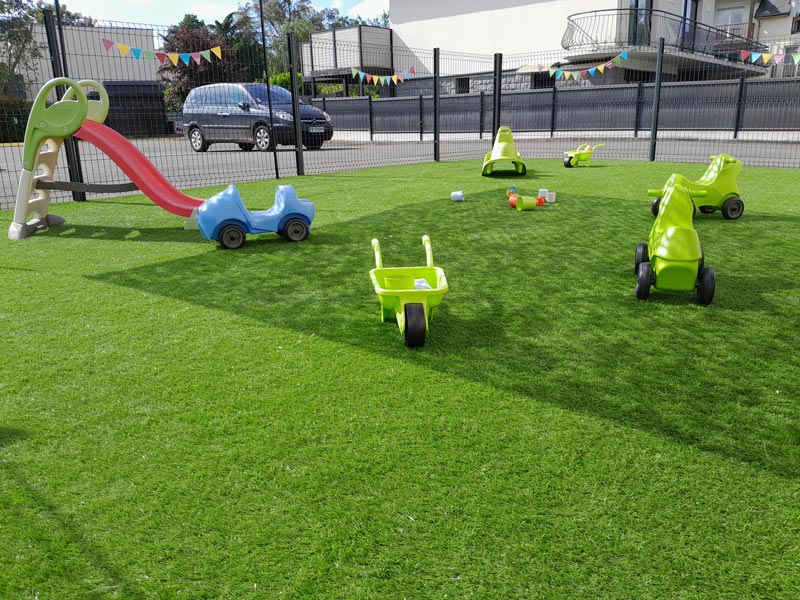 - Privilégier du mobilier et des jouets respectueux de l’environnement, pour cela nous avons fait le choix de faire appel à Wesco © ; qui s’engage à l’utilisation des matériaux, totalement ou partiellement recyclables, d'une toile enduite certifiée Certipur, de produits garantis sans substances nocives et produit à 80% en France à Cerizay (79) et à Mathou ©, leader sur le marché de l’aménagement dans les structures petite enfance « made in France », depuis 1991 à Rodez (12).